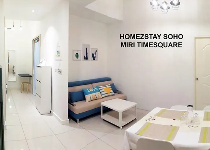 Tempat ini terletak dalam jarak 10 minit berjalan kaki dari pusat bandar Miri. Pangsapuri ini terletak 2.5 km jauhnya dari Surau Hidayatullah & Pusat Sumber Ilmu. Banyak pilihan tempat makan terdapat di Ayam Penyet Ria, dalam jarak 6 minit berjalan kaki dari pangsapuri Homezstay Soho Timesquare Miri. Pangsapuri ini terletak di luar Soon Hup Tower.
